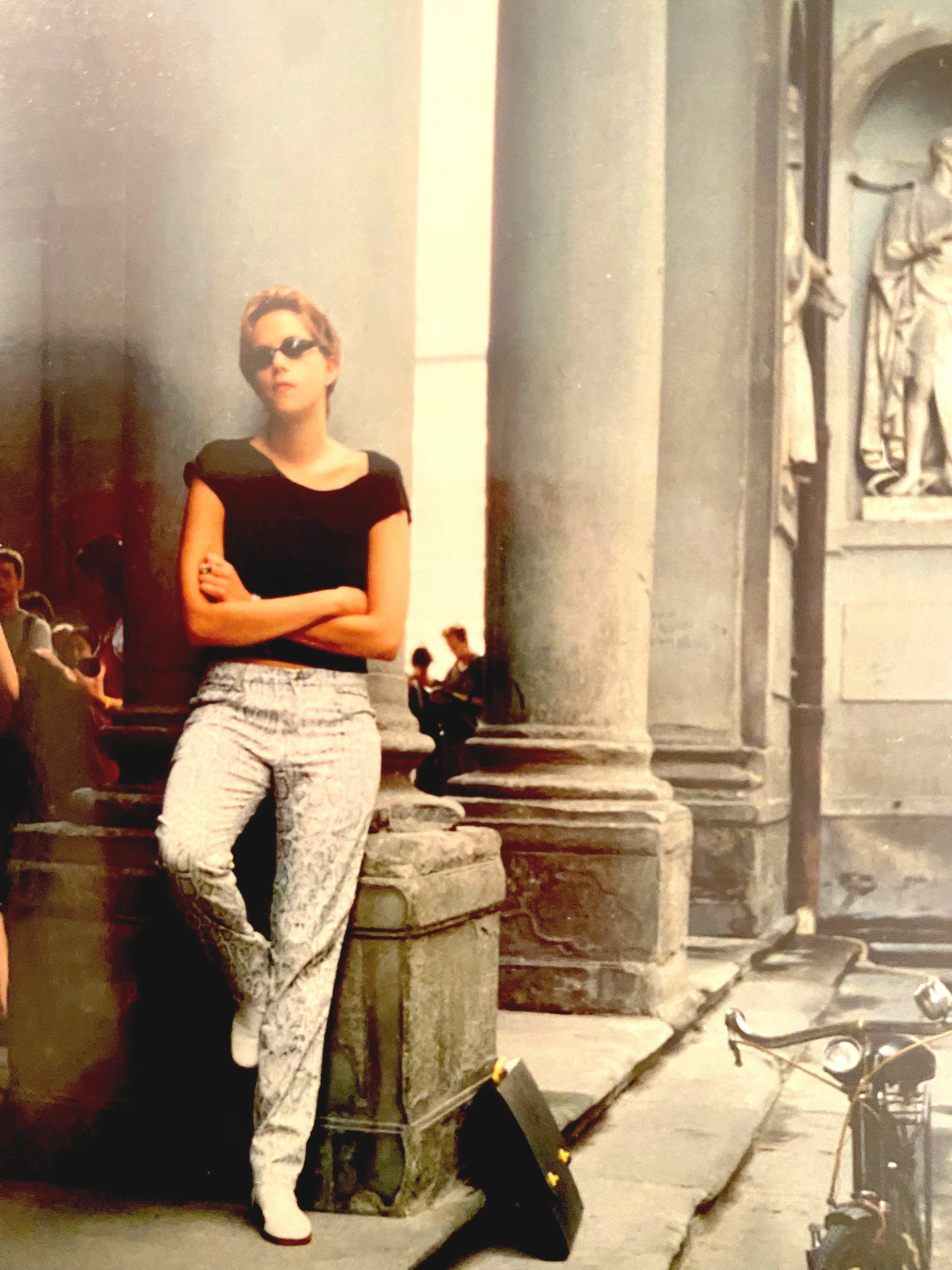 Rome, 1995. Check out the second-hand pair of mens pants purchased off a street stall for $5 and paired with white motorcycle boots I found in the garbage.